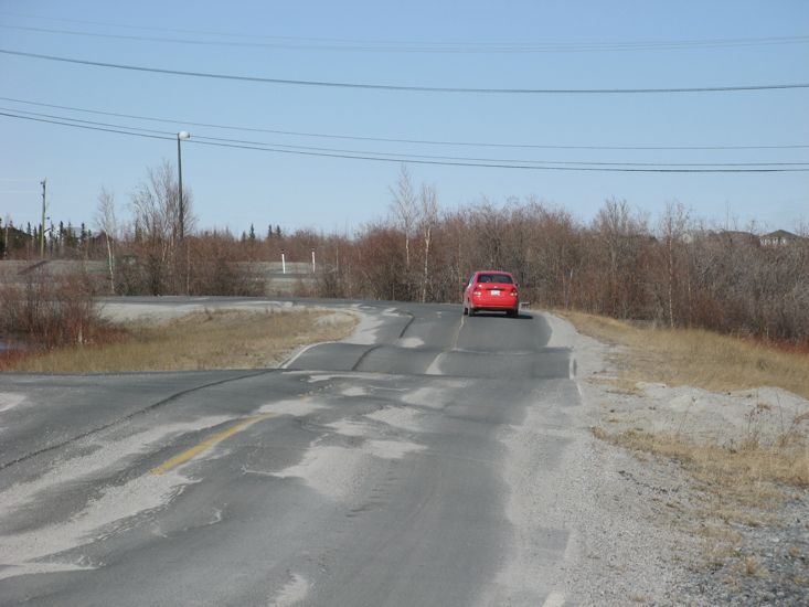 The Prince of Wales Northern heritage Center had some interesting exhibits on local culture and nature, including a particularly interesting film and display on the construction of a moose hide boat. The parking lot and access road also proved interesting - they had some of the largest frost heaves we have yet seen - the pictures unfortunately don't do them justice. Please note that the road with these heaves is also the access road to the Northwest Territory Assembly Building.