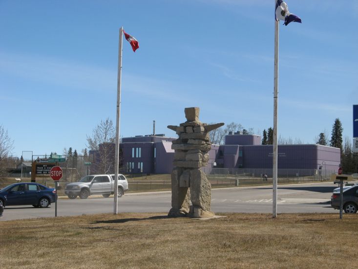 During the morning we took a side trip to the town of Hay River, a prosperous little town near the southern end of great slave lake and on the Hay River. It is a transportation and service center particularly for the summer water traffic on Slave Lake. The town boasts the Purple High School. The town was moved to its current location when the original town located on the river flats was flooded in 1963.