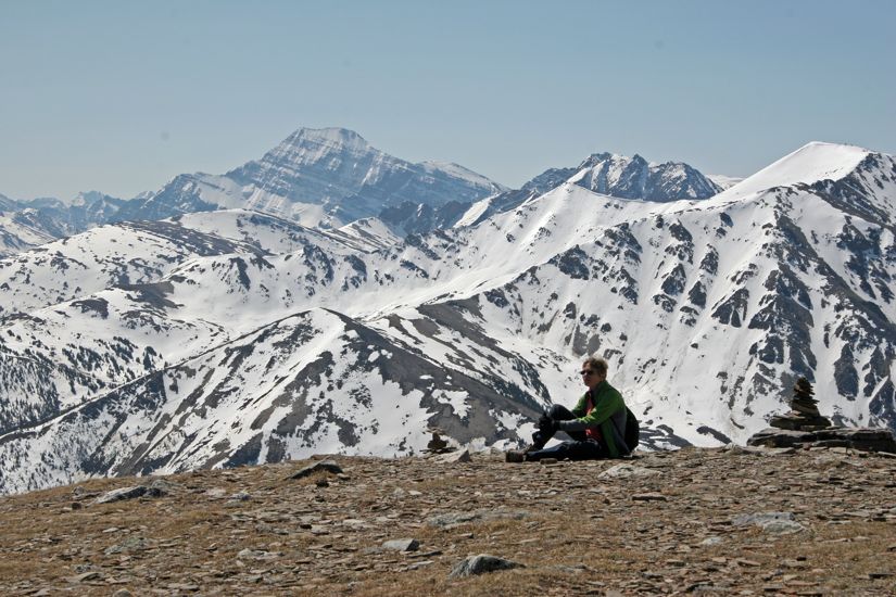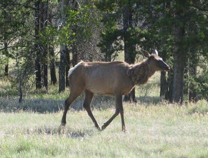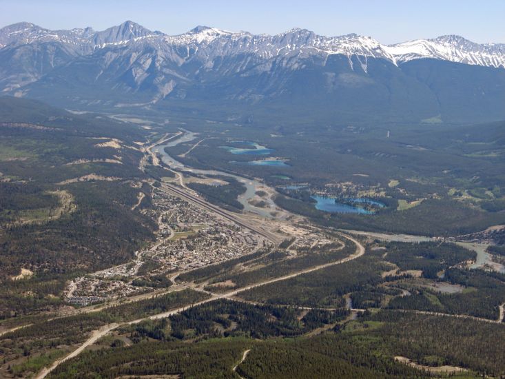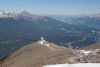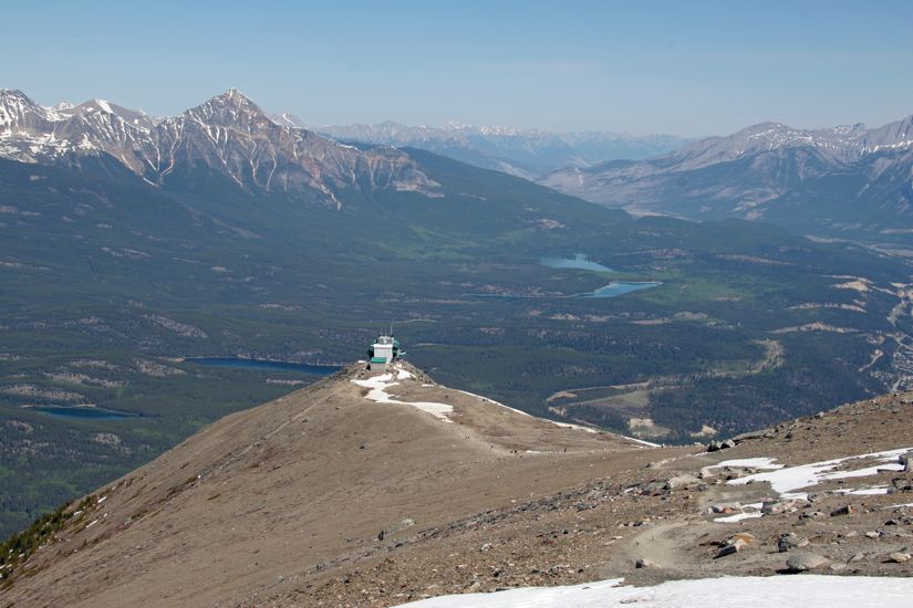 Another beautiful sunny day awaited us and we were away early, at least compared to our usual relaxed starts. After a brief stop in Jasper to make a few phone calls we found our way to the Jasper Tramway which lifted us up the side of Whistlers Mountain for a panoramic view of Jasper and its surrounds. From the upper station a trail continues a couple of kms and several hundred feet farther up the ridge to the summit of Whistlers. We spent an enjoyable hour hiking up the trail, admiring the scenery and soaking in the atmosphere. We had visited this region in 1976 and had a few adventures on the lower slopes of a couple of the local peaks, so we did more than a little reminiscing also.