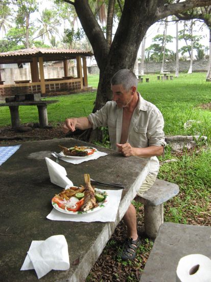 At the pier we bought some corvinar a local type of fish that has skin not scales that we planned on having cooked by a local lady for lunch.