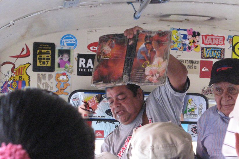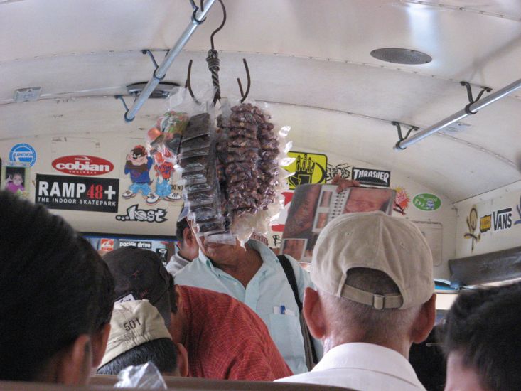 Now the bus was a real circus. While we waited for the bus to fill and get underway a variety of vendors took the opportunity of a captive audience to pitch their wares, we had people selling cold drinks, candy, nuts, bread, and trinkets. But the most amazing was a guy that stood at the front of the bus with a folder of photos selling cancer cures and surgical procedures.