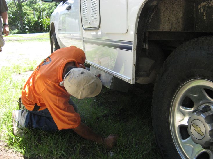 The only thing of note today was some work we got done on the Tiger. Norm had suggested that we should get a cover for the propane valves that are visible on the side of the Tiger; his thinking - the shipping company may not notice the propane and ask us to empty the tank. This is of some importance as (apparently) propane will be hard to find in South America.