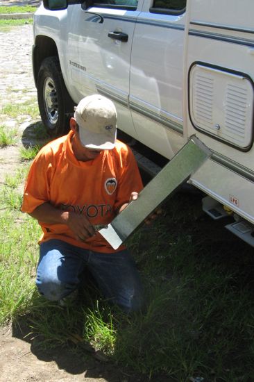 So this morning we went into the local town - San Vincente - and asked around until we found someone that could fabricate a cover of sheet metal. The first guy we asked had too much work on his slate but he directed us to a competitor. The guy did a good job and only charge $15.00.