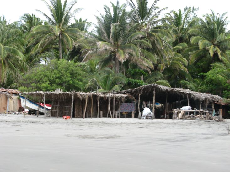 It took Norm and I all of 5 seconds this morning to agree that we would not stay at Las Tortugas for the day - we had both reached the same conclusion about Thomas - his place was very nice, but we could not stand any more of him. So by 7:30 we were driving back down that dirt road seeking another place to stay. After a few failed attempts we found another of the beach front properties where we would park for the day and overnight. This was quite a contrast to Las Tortugas, in no way could you say it was nice. There were two rows of ramshackle cabanas, toilets and showers that would embarrass a Siberian monk, and to top it off on the beach front there was a rabbit warren of palm leave thatched shelters selling food and drink. However, none of this was going to worry me, all I wanted to do and what I did most of the day was sleep - in the hope that my latest malady would depart.