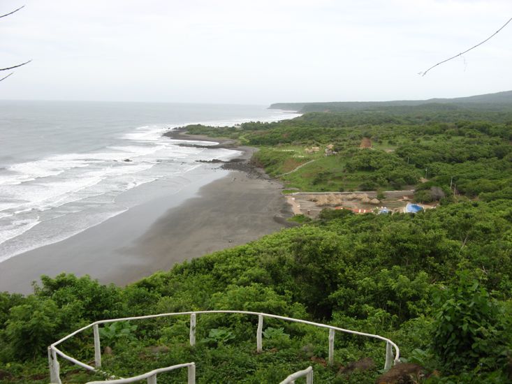 From Sam Miguel we headed towards the Pacific Coast and a well known beach resort town of El Cuco. It was a pleasant drive, and on arrival it did not take long to realize that this was not a resort town in any American sense of the phrase. A small grubby town is the supply center of this resort area. There are places to stay or park for the day spreading west along the beach for some miles. Behind these beach front properties is a very rough dirt road, that in places is being excavated to install piped water for the residents.