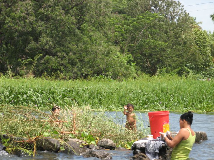 A nice drive through the lake front park brought us to a water front establishment that offered boat rides through Granada's famous islands. These islands are simply piles of rocks ejected from a local volcano, there are hundreds of them varying in size from 3 feet across to 3-4 acres. The larger ones have dwellings, some quite elaborate, and power lines run out from the shore. Norm suggested we take a 2 hour boat tour - which we did. It was pleasant, with a breeze off the water, and interesting. A number of the islands were for sale. One at US$100,000 about 50 yards square with no buildings, and another about 1 acre with some old walls for US$285,000 - guess we won't be moving here anytime soon.