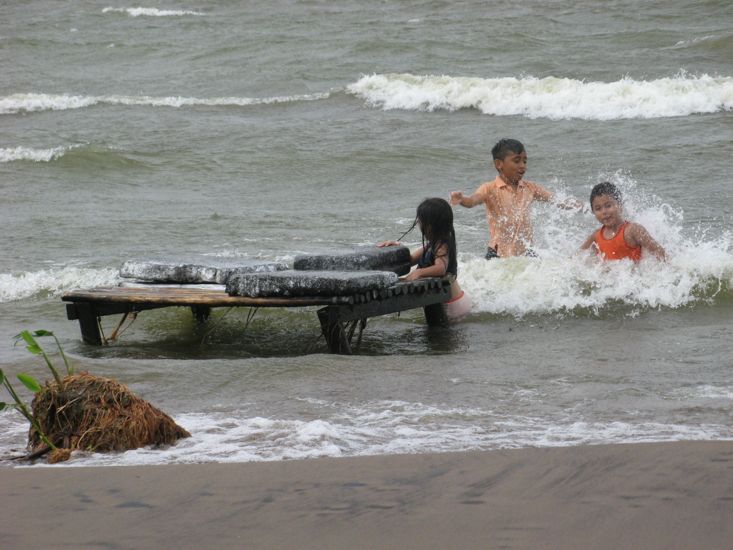 We spent the afternoon walking along the beach, or just sitting watching the activities. We saw buses, delivery trucks, private cars, taxis and many motorcycles use the beach front as a road. There was a strong wind blowing from the north that kept the temperature down and the insects away. A very pleasant afternoon and evening.