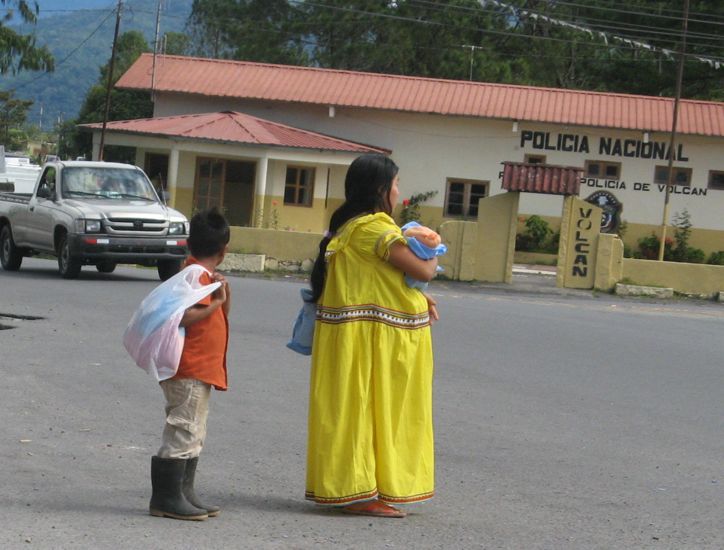 We did some touring around this morning before leaving town. The Tiger was left in the police station yard while Norm acted as chauffeur and tour guide. We travelled up the road to Cerro Punta, on the way stopping to visit and tour a lovely old hotel named Hotel Bambito - tennis courts, thermal indoor and outdoor swimming pools, and horse riding as well as a nice restaurant. Further up the valley we saw extensive market gardens on the hill sides and crews picking carrots. The produce all looked wonderfully fresh and it was all I could do to stop Nina buying bags of the stuff.