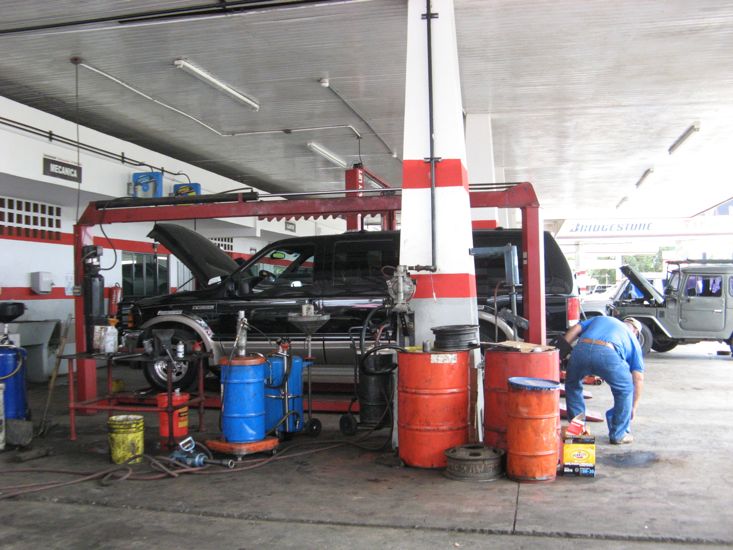 At the Price Smart we bought oil for the vehicles as well as groceries and then headed off in search of a place to change the oil for us. We stopped at a Firestone center and had the oil changed in both the Tiger and Norms Ford. In addition to the $39 we paid for the 3 gallons of oil at Price Smart the Firestone place charged me $10.50 to change the oil and check fluid levels in all axles, transmission, and transfer case. Pretty great deal.