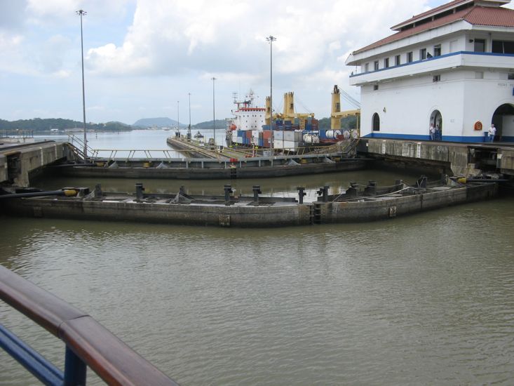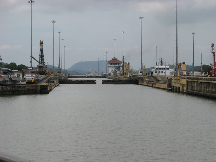 Today was the Canal visit - I am sure everyone who comes to Panama City visits the canal and locks at some time. Today we took what is called a partial traverse. Which means we started in Gatun Lake, the highest point of the canal, and descended 31 meters through Pedro Miguel locks and then through another 27 meters in each of the two chambers of the Miraflores Locks to the Pacific Ocean level. In the process we passed under the.