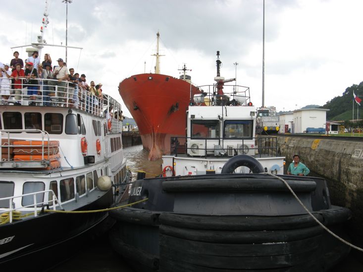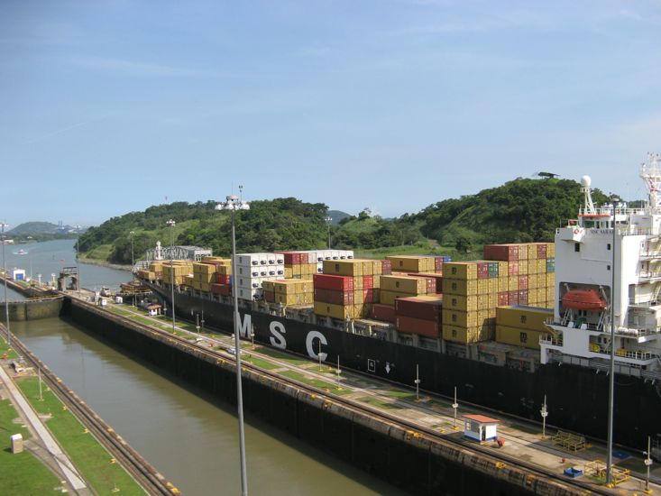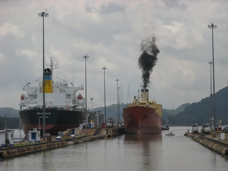 Panamax ships are the largest ships that can pass through the canal, while in the locks they only have 2 feet clearance on either side. Ships larger than this are called postPanamax.