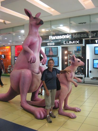 The mall is big, putting Tacoma mall to shame, about 1 km in length and with animal themes for the identify to the different entrances. One entrance is marked by a pair of 10 foot high fiber glass canguroo - Kangaroos. While at the mall a heavy rain storm hit, the rain drops so big and rapid that their sound on the mall roof made conversation almost impossible.