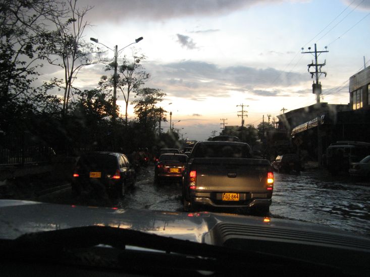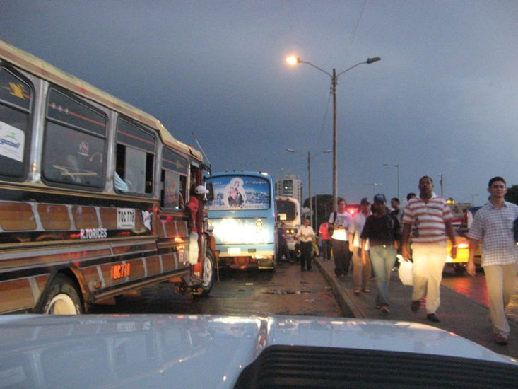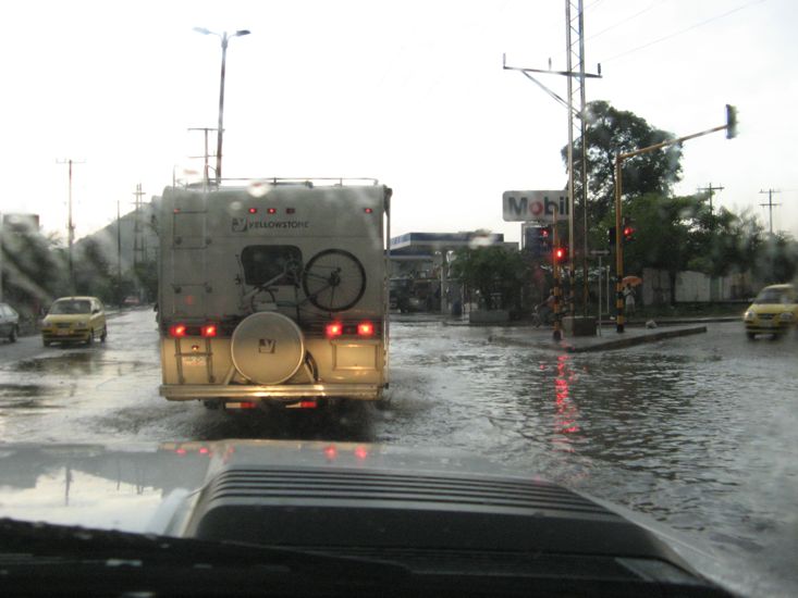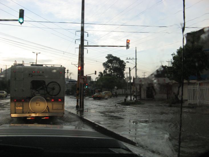 But - Betty is not coming with us, so how do we find our way back to the part of Cartagena that we know? Follow Ceza for a while and then wing-it. As a result we found ourselves at 6:30 in the dark, in rush hour traffic, surrounded by buses, in one of the poor parts of Cartagena driving over streets that are covered - and I mean covered from one side to the other - in 1.5 feet of water. A crazy hour navigating by guess work but we eventually found a part of the town we recognized and then back to the hotel. Pheh!!!!! But a successful end to the day and the process.