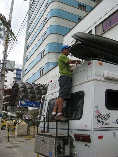 Not a very exciting day. First thing this morning we did some repacking of the Tiger, in particular I put the storage pod back on the roof-racks - turned out to be much easier than I had feared. Then we visited our customs agent office to get the insurance. We are now set to travel.