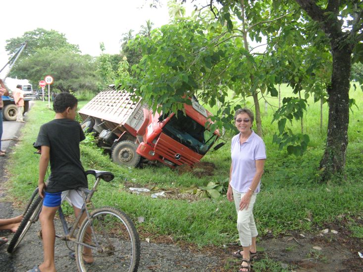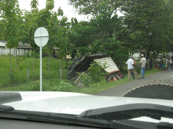 The truck that fell off the road. I don't know how they managed to get this truck into the ditch - but they did. How they would get it out was even more of a mystery. They had a single US ford pickup truck trying to haul it out.