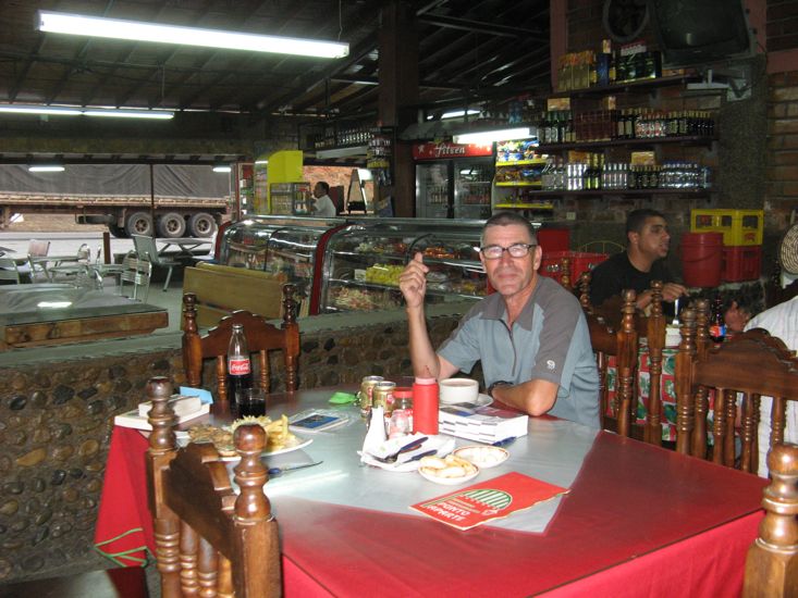 After lunch at the water park we headed out on highway 62 towards Peurto Berrio and through Barbosa. For a while the road followed the flow of the Medellin river loosing altitude on a narrow twisting road, and then it headed up hill and became steep as well. We arrived in Porce and at the Estadero at about 4:00 pm, to find a bustling road side stop. The ritual of asking could we stay the night turned into a major production. There was no difficulty in getting a yes and even being shown where to park, but many people wanted to see into the Tiger, talk to us about what we were doing and chuckle at our lack of Spanish.