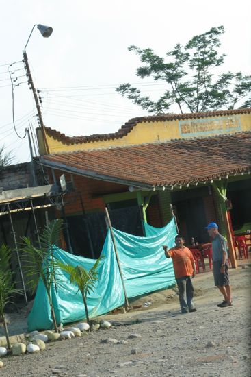 We decided not to stop for the night until the highway gained a bit of altitude so it was not until about 4:30, and maybe 30 kms from Bucaramanga that we tried our first likely stopping place, but got told NO - further up the road there is a place. Sure enough a few minutes later we came to a suitable place.