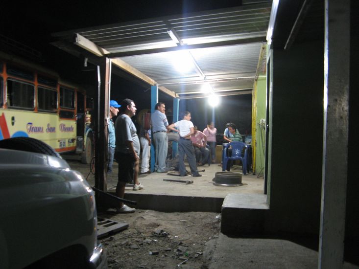 The final entertainment for the evening was watching the tire repair man replace the valve stem on a tire inner tube - after of course removing the tire and tube from the bus wheel. It took about an hour, but in that time he took a tube that in the US we would simply discard, cut out the old valve stem and welded in a replacement. Amazing.