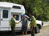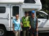 We had many conversations with people wanting to talk about where we had been, and the camper. After dinner we sat at one of the restaurants for a drink and watched, and marveled at, the chaos in the parking area. Vehicles of all kinds parked willy nilly, blocking each other in. But it all sorted itself out without any friction. The troop of armed infantry watching the parking area added a surreal element to the scene.