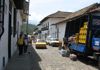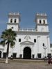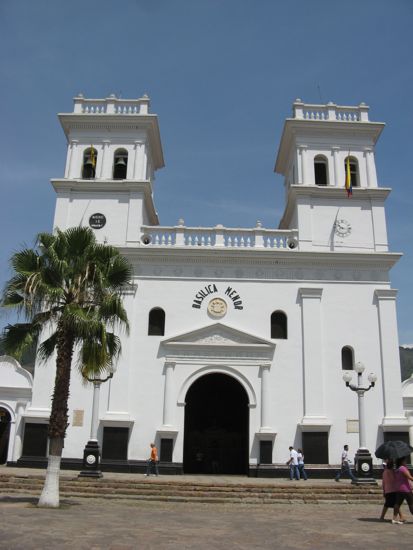 Our first destination today was the town of Giron said by our guide book to be noteworthy for its cobbled streets and white washed Spanish colonial buildings, and its beautiful central square. Our first effort to turn off the highway into Giron was less than successful, we turned into a nice cobbled one-way street the wrong way. Needless to say the street was narrow and took us about a dozen back and forward moves to get turned around while the local drivers encouraged us by sounding their horns, and squeezing around us while we tried to turn. Our second effort to turn in Giron ended in another nicely cobbled street, but a dead end. This time Nina asked a pair of moto (small motor cycles) riders where the entrance was and rather than explain one volunteered to lead us there. Well, the correct turn was a sharp 330° corner that we could only negotiate with a K turn. But the fun was not over. This town was founded in the early 1600, well before motor homes were thought of and the streets are narrow - at one point we passed between a pedestrian and a moto rider and both of them had to duck so as not to be hit in the head by our side mirrors.