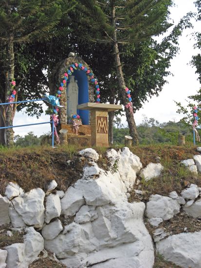 Just before entering Barichara there is a Madonna shrine or monument on the left hand side of the road with a space behind it that is pretty well shielded from the view of passing traffic. We were in Barichara when it was time to stop for the night and the only other option was the town square. There was a place closer to town offering shaded camping but the entry gate had a height restriction and was not suitable for us. Would work for SUV's and might work for van conversions.