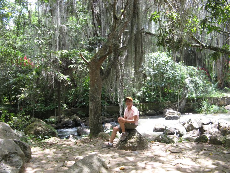 We spent a good deal of time this morning at Parque El Gallineral in San Gil. A really amazing garden or park with the most enormous trees dripping with extremely thick, long Spanish moss (called barbas de viejo or tillandsia here), and wonderful tropical flowers. Another unexpected gem!