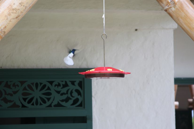 The place is simply wonderful. A loverly hacienda building with guest rooms, a pool, covered picnic come barbecue area on flat grassy land. Lovely tropical plants that are well established and well maintained. Lots of birds including many humming birds that flit all over the place and from time to time seem to get into fights.
