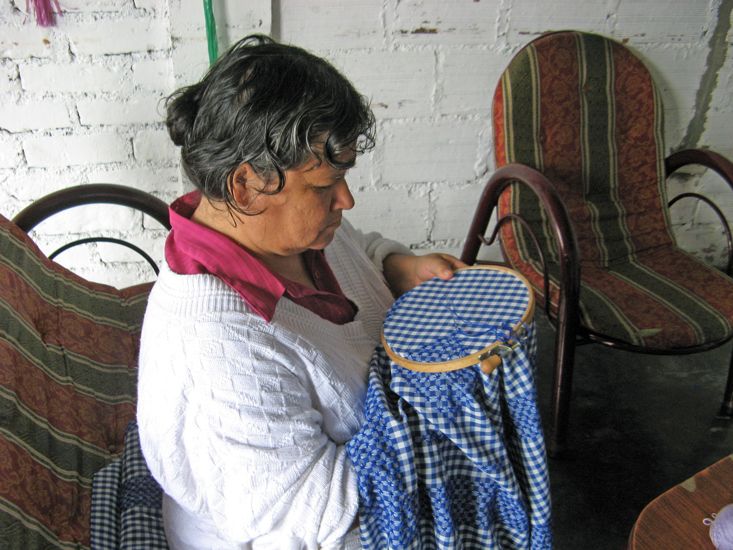 We are continually amazed by the warmth and hospitality of the Colombians we have met and often feel inadequate in not being able to return it. This time however we felt like we at least partly repaid our hostess. Deisy showed us a bed cover she was making decorated with cross-sticked patterns. When she went to demonstrate the stitch she asked me to thread the needle, so I gave her my reading glasses. She seemed very delighted with the gift.