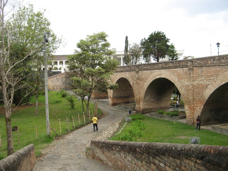 Popayan was a bit of a driving challenge as again we did not have a good map of the town and once into the old part of town the streets were a maze of narrow one-way alleys, full of traffic, with road and sewer works just to make things more exciting. We managed to find a parking spot and walked around enough to find the two old bridges that are one of the sights of the town.