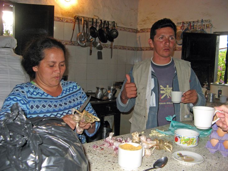 Late yesterday afternoon on the dirt road from Popayan to San Agustin we met a German couple in a black Landrover Defender; they told us about a hotel near San Agustin that would allow us to park on the property. The place is called Anacoana and its about 4kms out along the road to El Tablon and Estrecho. We got water, power, toilets and hot showers. GPS N01° 53.973' W76° 16.873'.