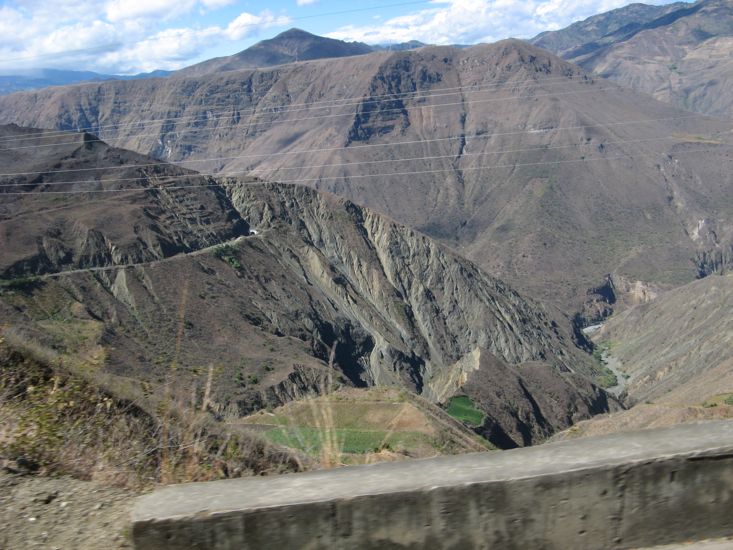 As planned last night we were up and moving by 7:30am and made good progress south on slightly less twisting road than yesterday. The drive was simply spectacular as it passed through wide and deep valleys. There were sheer drops mere feet from the road way. As has been the case on most Colombian roads the scenery is spectacular but there are no places to pull off the road so any effort to enjoy the scenery has to be done from the moving vehicle. This does not make for good photographs.