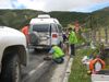 After a number of hours of unsuccessful effort by almost everyone at this road depot it was decided to call a tow truck and move the sick RV into town where better equipment might find the problem. While the mechanics had worked on the RV, we had made friends with the armed security guard, the driver and paramedic that manned the ambulance, and the driver of a gravel truck that turned up partway through the proceedings. The atmosphere was more like that of a picnic than a roadside emergency call.
