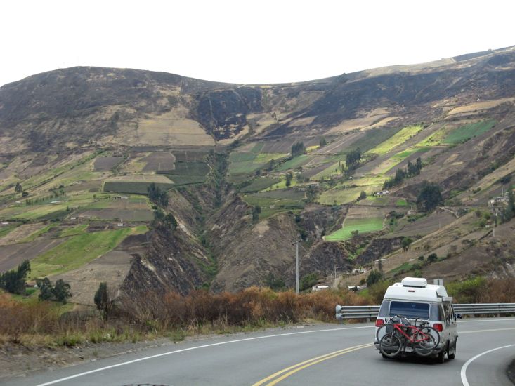 Back in Pasto we picked up the now repaired RV and headed down the highway towards Ecuador. The highway was another series of huge open valleys with the road twisting along their flanks, descending down to and then up from the rivers at the bottom of the valleys.