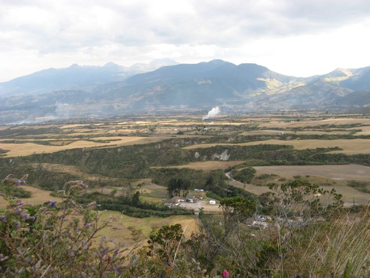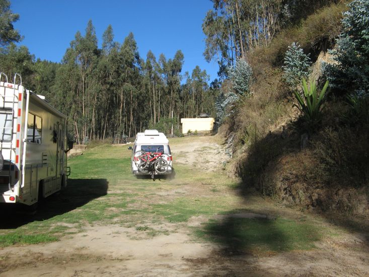 We hung around the campground until late this morning, bidding Sandra and Bernie bien viaje, talking to the couple that arrived last night and generally just lazing, then back north to Ibarra for a chance to get at a grocery store with some food that we might want to eat.