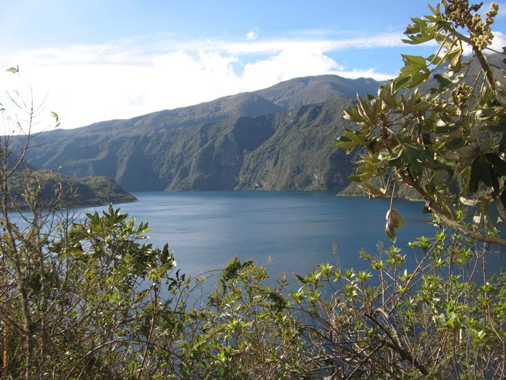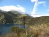 After the chores we headed for the Cotacachi, a small town famous for its leather good - but we did not see any. Will try again tomorrow on our return. From the town we followed the signs to Laguana De Cuicocha, a crater lake that contains two islands and an expanse of beautiful blue water. The road up to the lake climbed steadily, and after the park gate steeply for a short stretch to 10,200 ft (approx 3100 m)at the place we parked for the night.
