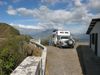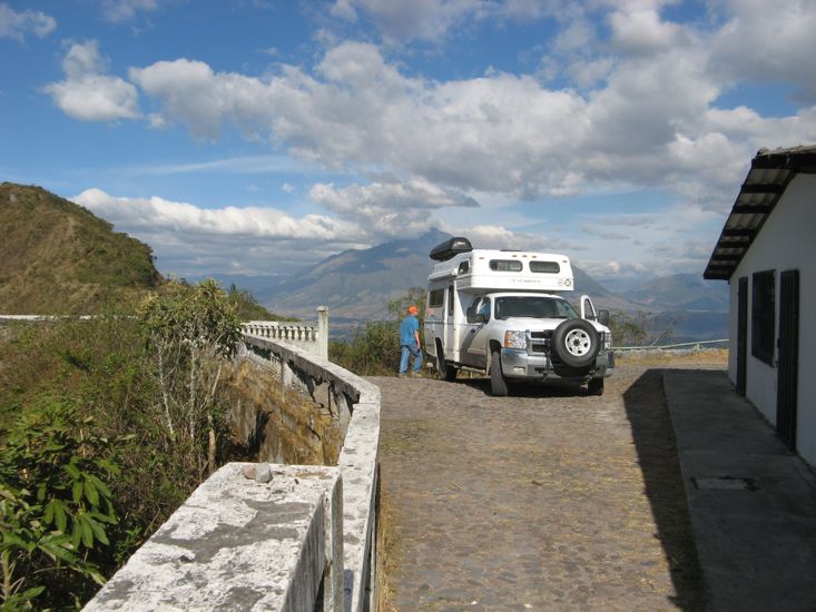 The spot is spectacular, its right next to a building that looks like it belongs to the Park, there is room for perhaps 4 vehicles on the cobbled parking area, and we have views of the lake, the valley below where Ibarra and Otavalo are, and we can look across the lake to Mt Cotacachi at 4944m.