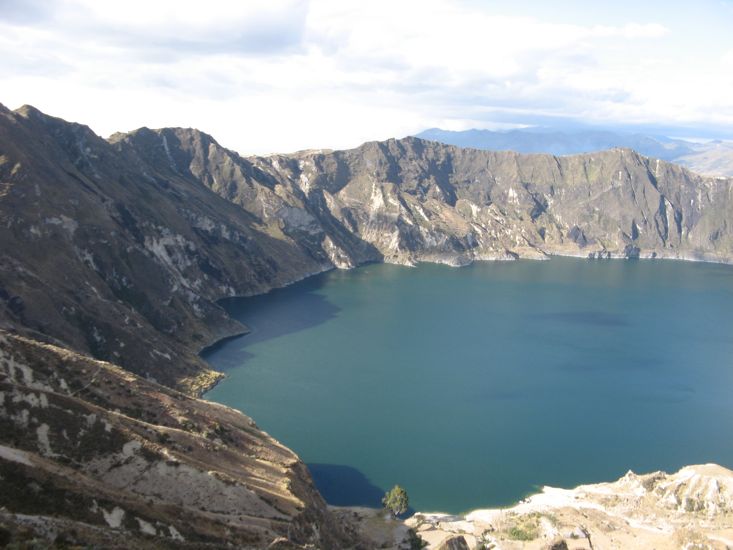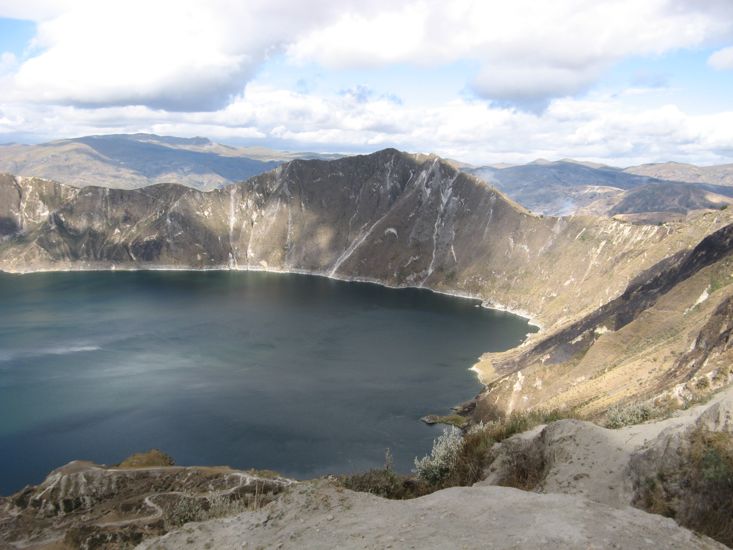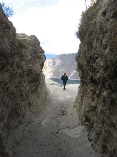 From the parking lot one cannot see the lake. To get a view requires walking 50 yards up to the lip of the crater - did I forget to mention that Quilotoa is a crater lake - or walking 100 yds down a narrow defile that leads to a path that descends down to the lake shore. We did not venture the walk/climb down to the lake.