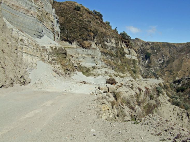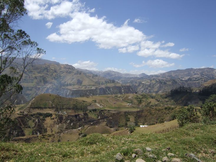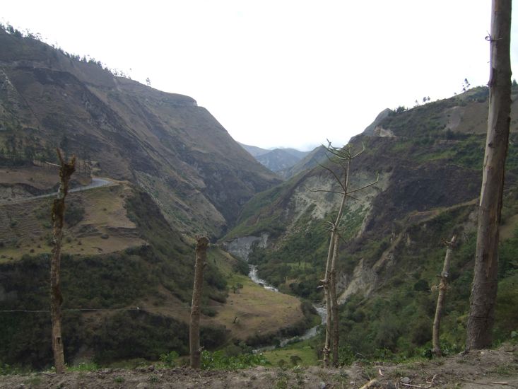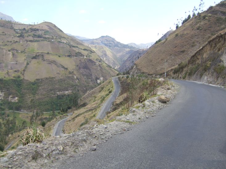 About midday we pulled into Sigchos for lunch and to try the internet, the later with only limited success. From Sigchos the road was cobbled as it descended into a very deep river valley (I think its the Cumbijin River), then blacktop sealed road as it climbed out of the valley. After Sigchos the valleys are just as impressive but do not look to have as much cultivation.