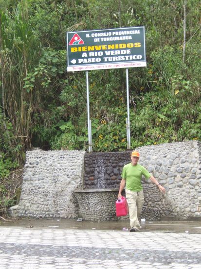 Banos was much quieter today than on our last visit. It seems that it is really only a tourists resort at weekends. Many of the souvenir and candy stores were closed and, thankfully, there were only a few dozen people at the baths we chose to visit. At first glance the water of the thermal bath was a bit off-putting, as it is a yellow color. But from what I could make out of the sign showing the mineral content that color is natural. We spent a nice hour or so alternatively soaking in one of the two hot pools, dunking under a cold natural spring shower and absorbing some sun. In the process I got a little sun-burned - did not realize until much later in the day.
