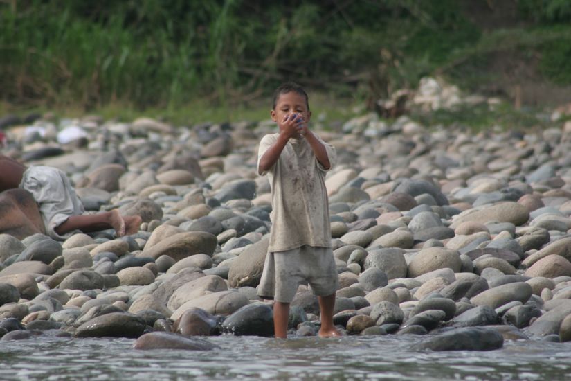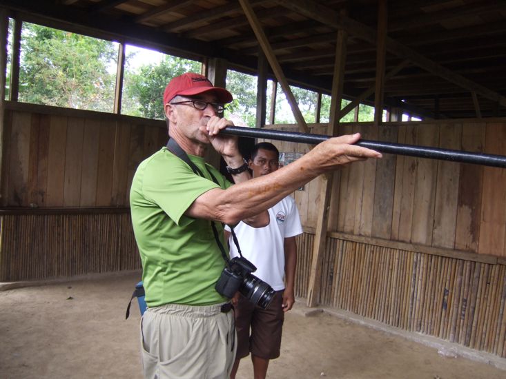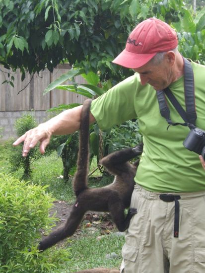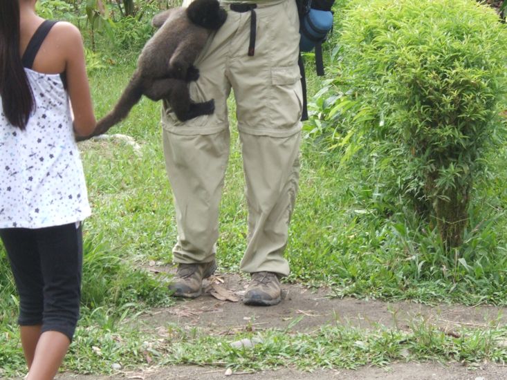 We took a canoe tour on the Rio Napo. The Napo which feed into the Amazon is a pretty impressive river in its own right (though not on the scale of the Amazon) quite wide and fast flowing. The canoe was of course powered by an outboard motor. Even the indigenous guides like some modern conveniences. During the cruise we met an older indian man panning for gold on the river bank. He said he finds on average 2 grams per day and gets $24 per gram. We also visited another jungle walk to see the medicinal plants and some animals. Very different to the previous days tour of medicinal plants and we got to see a number of local animals up close. As you can see the monkeys were pretty playful.