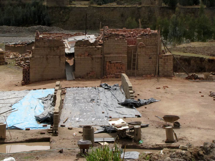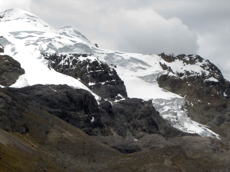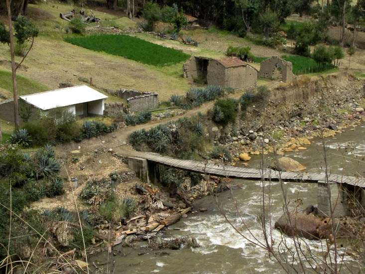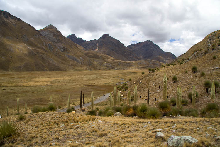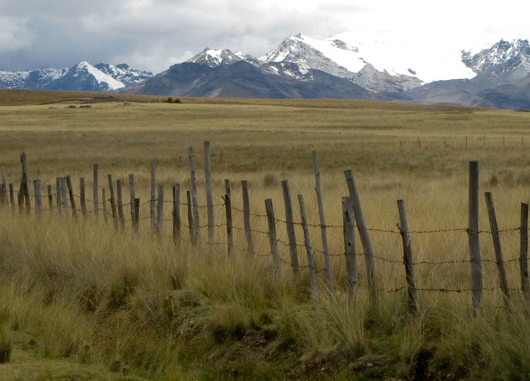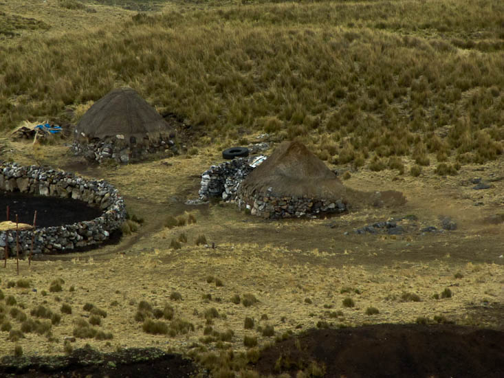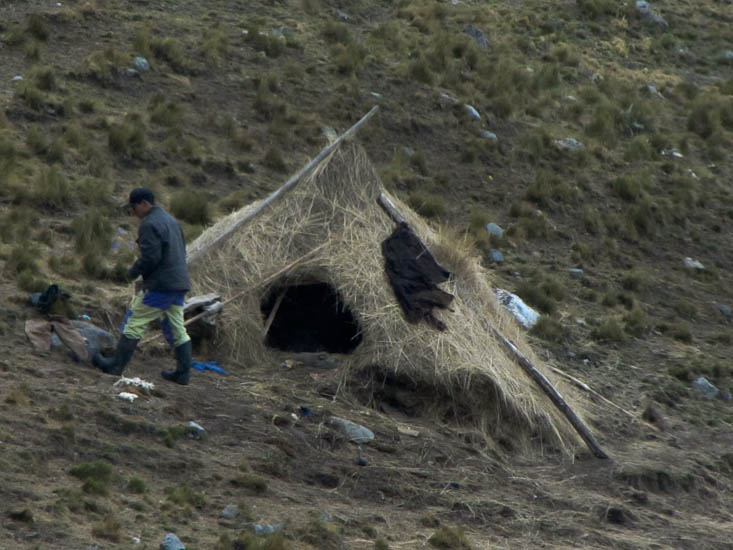 We took a side road out of Pachacote into Huascaran National Park to see these plants and were rewarded, as we found many in flower and got what we hope are some great photos. After seeing these amazing plants we continued east on the side road to a pass in the Cordillera Blanco at 15,800 ft. In all we travelled about 22 miles east on this road and all along the way we saw Peruvian indian groups tending crops and animals. The dwellings they were occupying were very primitive but we guessed they were only temporary shelters rather than permanent homes; at least that's what we hope. Another interesting thing we noticed, and have seen on our previous two days side trips, are irrigation canals along the sides of the valleys. Even in this remote and lightly populated valley there was an irrigation canal that ran at least the full 20 miles that we drove. What is interesting is that it appears hand dug; there are no roads or signs of access for even moderate earth moving equipment. In some of the other places we have seen these canals, the land is too steep for earth moving equipment.
