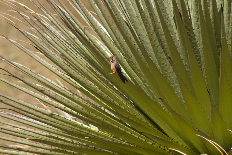 After our side trip to see the Puya Raimondii we wanted to find some lower altitude so we headed down Highway 14 towards the coast. Once below 10,000 ft we started looking for a place to pull off for the night. If you get to see the valley the highway runs through, you will understand that this was a tall order. So when we found a large pull off where we could get far enough off the road to be out of the line of "trajectory" of the trucks and buses we were delighted. All I can give you are the coordinates.
