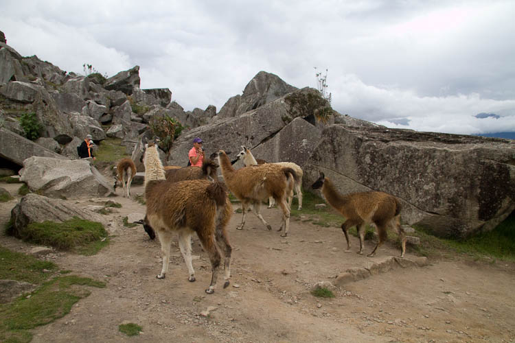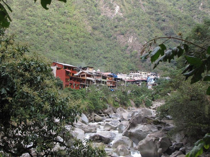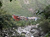 The train - the vistadome - was quite nice, with glass panels in the roof for a better view of the scenery. We sat opposite a Philippino man who lives in Manly, and an American from Salt Lake City. We had a pleasant 3 hour trip (with breakfast) into Aqua Calientes, the tourist town in the valley below the Machu Picchu ruins. The town was a surprise, much smaller than we had expected from the map in the guide book, with only one street - the other streets shown in the book were only alleyways. Hotels/hostels/restaurants and souvenir shops everywhere. We found a hotel overlooking the river, and the main street, got some lunch and then it was time for a bus ride up to the ruins and our first look at this famous site.