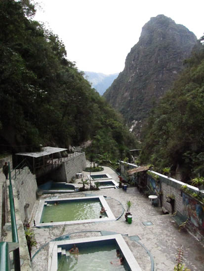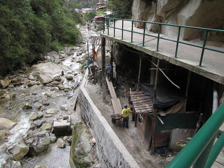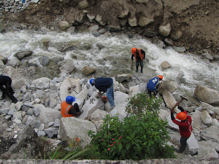 We spent the remainder of our time in Agua Calientes by sampling the hot spring baths a short walk up the river from the village, watching the stone work going on in the river, having cocktails at one of the many bars, and browsing souvenir shops.