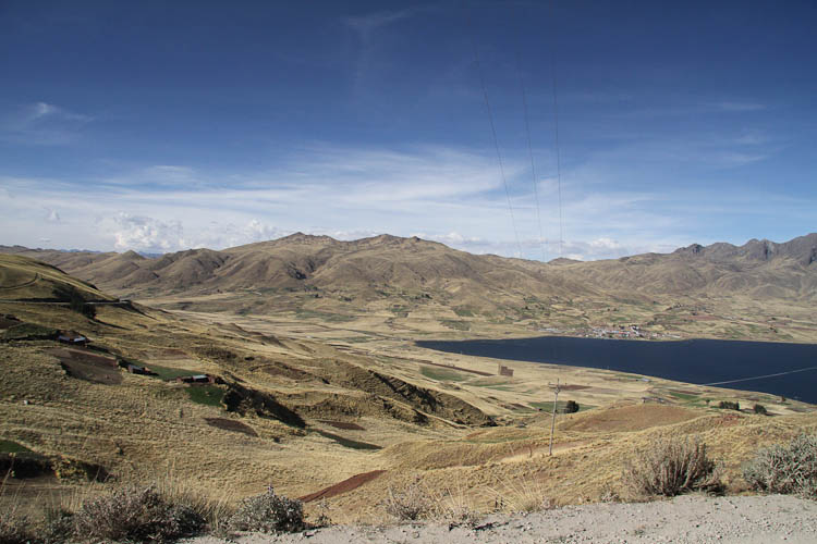 We had to ask directions a couple of times to find the turn off onto the side road as our GPS knew nothing about it. But it turned out to be easy as the road was sign posted to Arequipa. This road was a mix of good blacktop and bad dirt but afforded us some wonderfully wide vistas of big deep valleys with wide spread farming, and a large lovely blue lake.