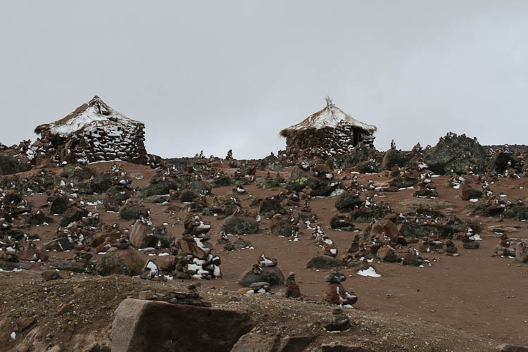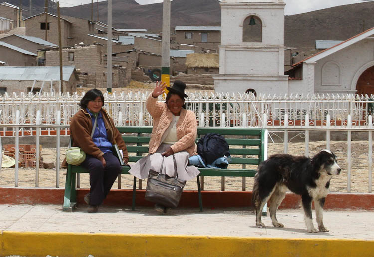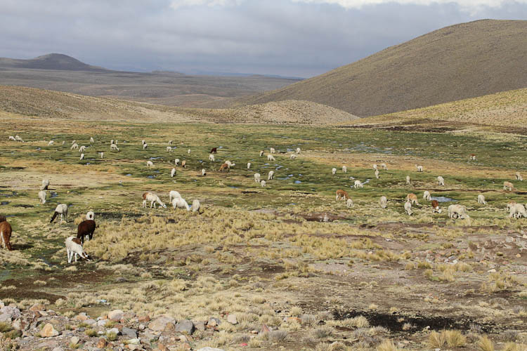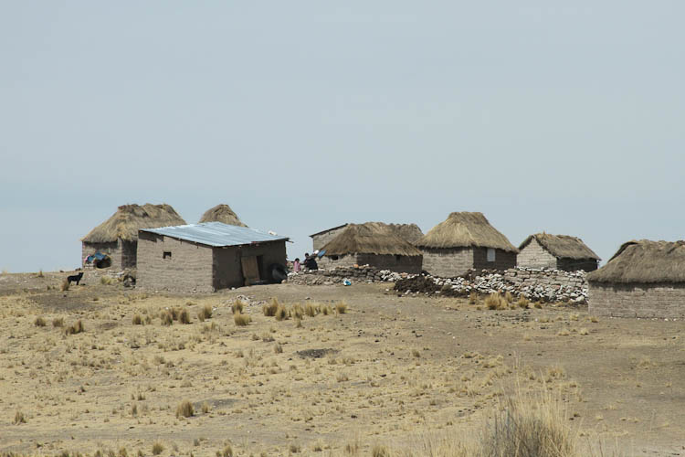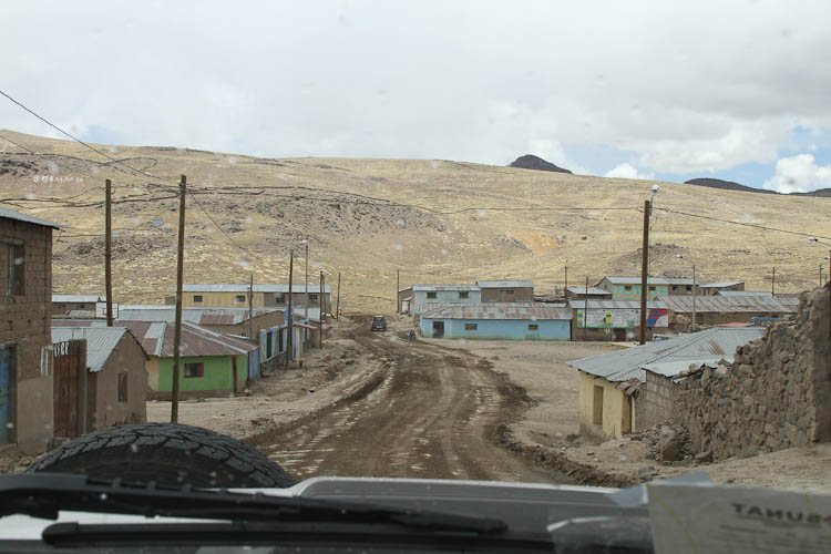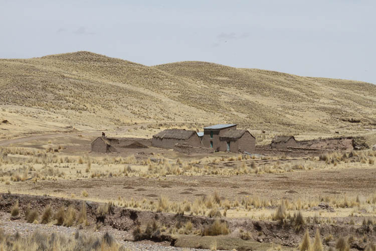 The antiplano is the name for the high desolate plateaus of Peru, Bolivia and Chile; and that's pretty much where we spent the day. From our camping spot last night at a little over 13,000 feet we drove all day at altitudes between 11,000 ft and our high point of 16,000 ft. And desolate it is, dry, dusty and cold. With the temperature at times as low as 35°F and never about 60°F. But - there are small communities and even individual family groups scattered all over the antiplano making a living from a combination of agriculture and rearing llama, alpaca, and sheep. Plus all these scattered little settlements are served by buses. The bus services are all the more amazing considering the quality of the roads, they vary from good black top to terrible gravel and broken pavement. On the bad sections of roads the buses travel at speeds of 40 mph whereas the roads restrict us to 10-15 mph. Anyone interested in building a vehicle for rough roads should come talk to the Peruvian bus companies for some hints on suspension design.