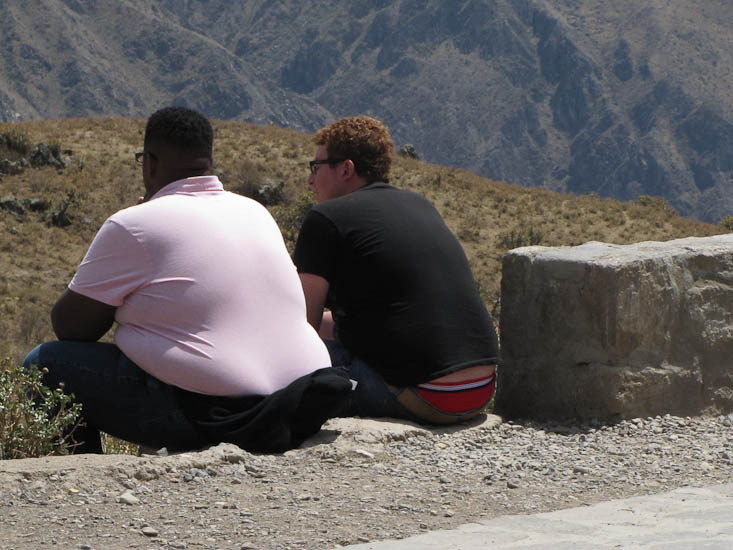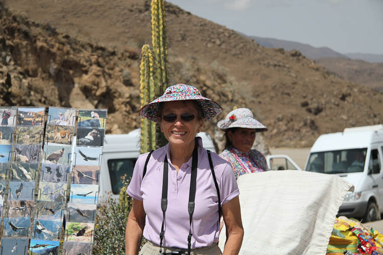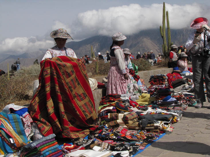 At the Cruz Del Condor lookout we found a throng of tourists and a dozen or so local ladies, in traditional dress selling souvenirs and food. The place was a buzz with activity until about 10:30 am when all the tourist buses departed and then so did the vendors. By 11:00am the place was quiet.