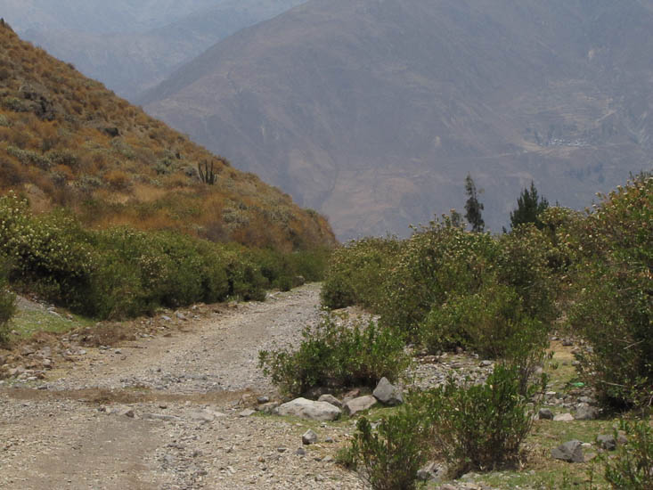 We left at 11:00 to go further up the road (down the valley) in the hope of seeing some of Canon Del Colca. But alas the deepest and steepest parts of this canyon can only be visited by a multi day hike. Canon Del Colca is 3191m deep (thats 10,530ft, over twice as deep as the Grand Canyon). But it's only the second deepest canyon in the world for in Peru, Canon Del Cotahuasi is 167m deeper. For us this statistic served simply to underline what we had already concluded - Peru does things on its own huge scale.