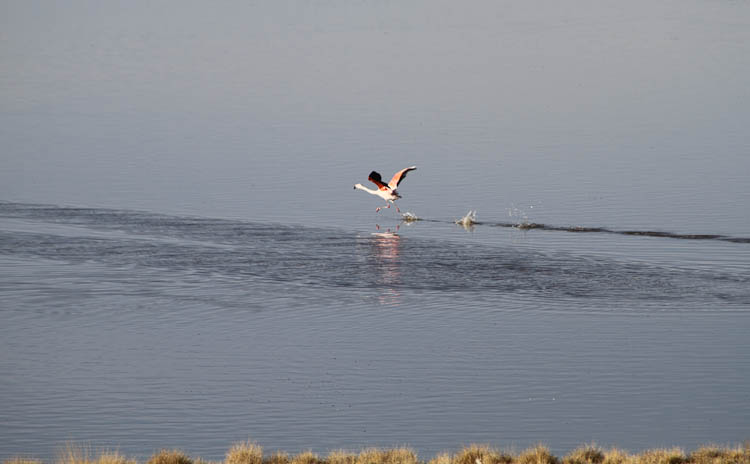 It was a beautiful morning with wonderful light and we were surprised and delighted to pass a number of lakes with flocks of pink flamingos. We stopped at the first of these and tried to get close for some good photos but a trio of lovely but pesky white birds got very vocal (we assume we were approaching their nest) and alerted the flamingos to our approach.