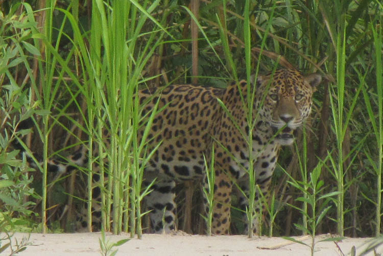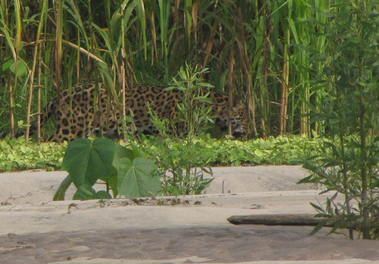 Today we said good by to the Manu River and National Park. After a relatively leisurely start we were into our boat and headed down the Manu River to the confluence with the Madres De Dios. Along the way we got really lucky as one of the guides spotted another jaguar on one of the numerous beaches along the river. We got a good, though distant, look at him. That's our second. Many groups don't see one in their 9 days in the jungle.